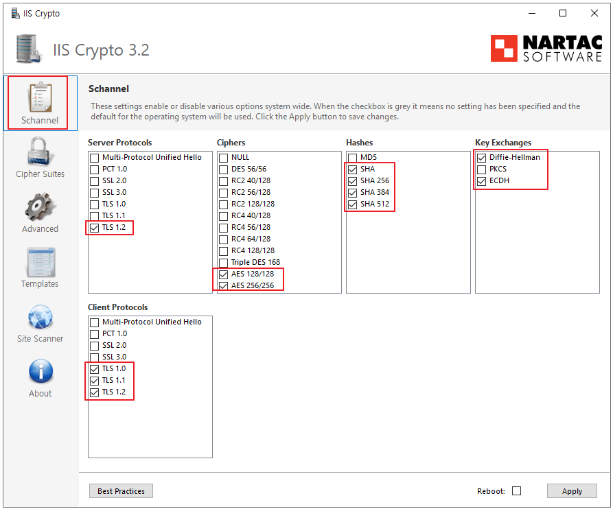 IIS Crypto로 Windows Server의 TLS 버전 제한 및 cipher suites 제한시 MSSQL 연결에 문제가 생길 수 있습니다.
